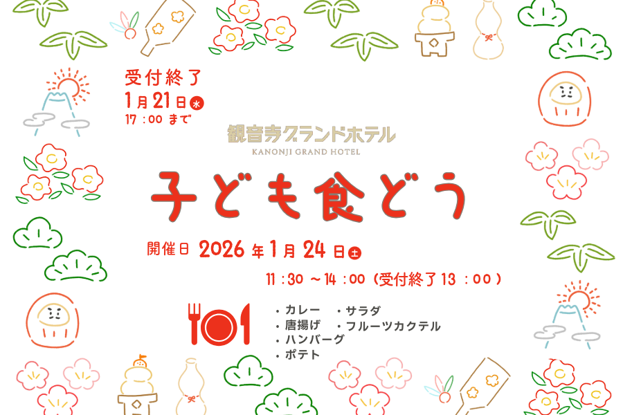 開催日2026年1月24日(土) 時間11:30〜14:00(受付終了 13:00) 会場観音寺グランドホテル 参加費子ども:100円/大人:200円